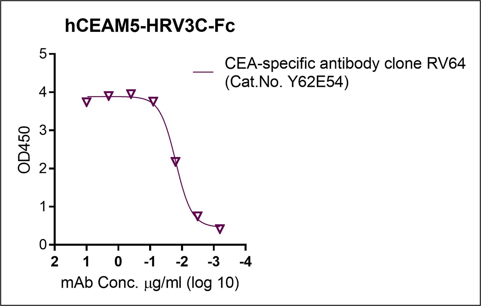 Human Carcinoembryonic Antigen (CEA) is a sensitive tumor biomarker for gastrointestinal cancer, and it is widely expressed in colorectal cancer (CRC) tissue and serum. Human carcinoembryonic antigen-related cell adhesion molecule 5 (CEAM5) with AA Lys 35 – Ala 685 (Accession: AAA51967.1 or P06731) fused with a HRV3C cleavage site and human IgG1 Fc (Fc) tag at the C-terminus was produced by human embryonic kidney HEK cells, followed by purification. Sequence is available upon the request. The purity has been examined >95% as determined by reducing SDS-PAGE, where protein migrates as 102-120 kDa. We evaluated its binding to a CEA-specific antibody clone RV64 (Cat.No. Y62E54) in ELISAs, see results. The protein can be cleaved by HRV3C protease for tag free.