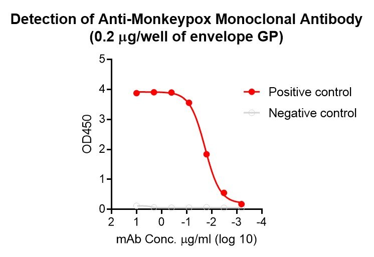One of symptoms of Monkeypox virus infection is rash. A rapid and effective assay kit detecting the levels of anti-Monkeypox envelope glycoprotein (GP) in human serum can facilitate research on antibodies produced in response to Monkeypox virus infection or vaccines.