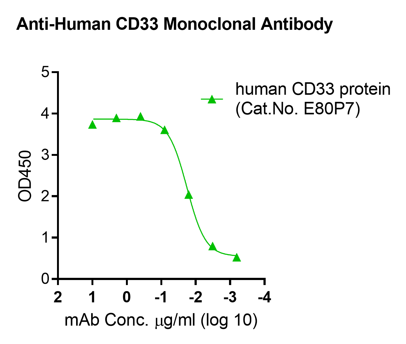 This antibody has been tested to bind to recombinant human CD33 protein (Cat.No. E80P7) in ELISA, see figure.