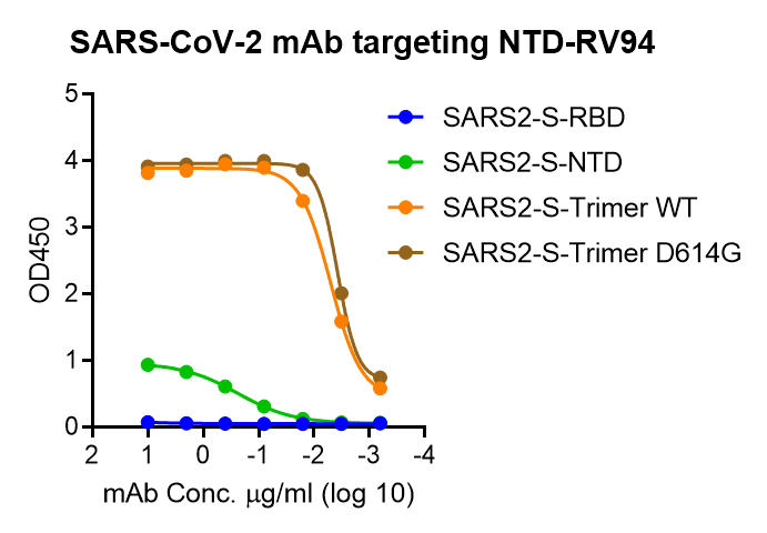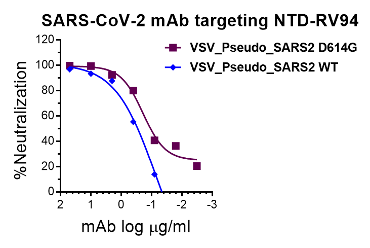 This antibody has been tested to bind to N-terminal domain (NTD) of SARS-CoV-2 S protein (Catalog # R94E65), and show neutralizing activity against Wuhan strain of SARS-CoV-2 pseudovirus (Catalog # P14N41).
