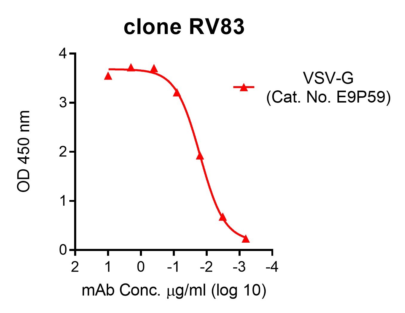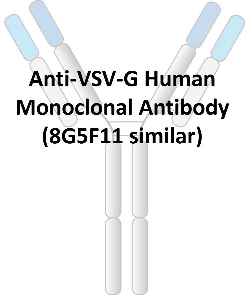 Clone 8G5F11 mouse antibody was known to bind a conserved epitope on the pleckstrin homology domain (PHD) of vesicular stomatitis virus glycoprotein (VSV-G), therefore showing cross-neutralizing against multiple VSV strains. Here we provide the 8G5F11 similar human antibody that has been tested to bind to VSV-G (Cat. No. E9P59), see figure.