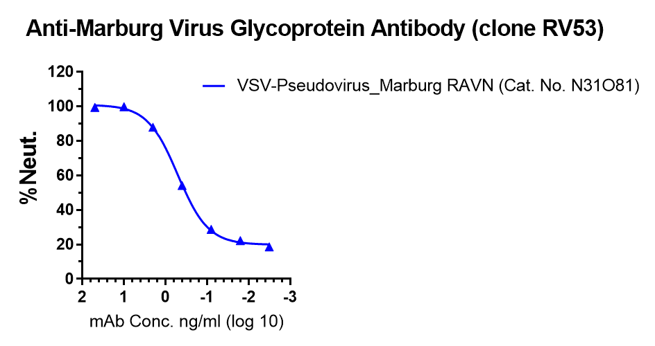 This antibody has been tested to bind to Marburg Virus Glycoprotein GP (Catalog # I27A51) and neutralize against Marburg Pseudovirus (Cat. No. N31O81) on Vero cells.
