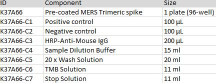 Mouse Anti-MERS Antibody IgG Titer Serologic Assay Kit (Trimeric spike)