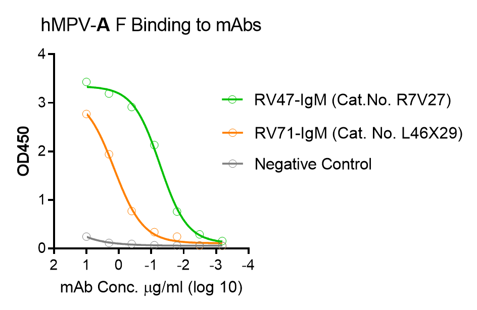 Customers who intend to use this kit to generate quantitative curves are suggested to consider the monoclonal antibodies to generate the reference curve: Recombinant Human Anti-hMPV Fusion IgM Antibody (Cat. No. R7V27) or Recombinant Human Anti-RSV and HMPV Cross-reactive F IgM Antibody (Cat. No. L46X29).