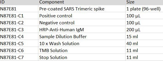 Human Anti-SARS Antibody IgM Titer Serologic Assay Kit (Trimeric Spike)