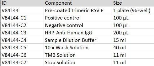 Human Anti-Respiratory Syncytial Virus (RSV) Antibody IgG Titer Serologic Assay Kit (Trimeric Prefusion Protein, F)