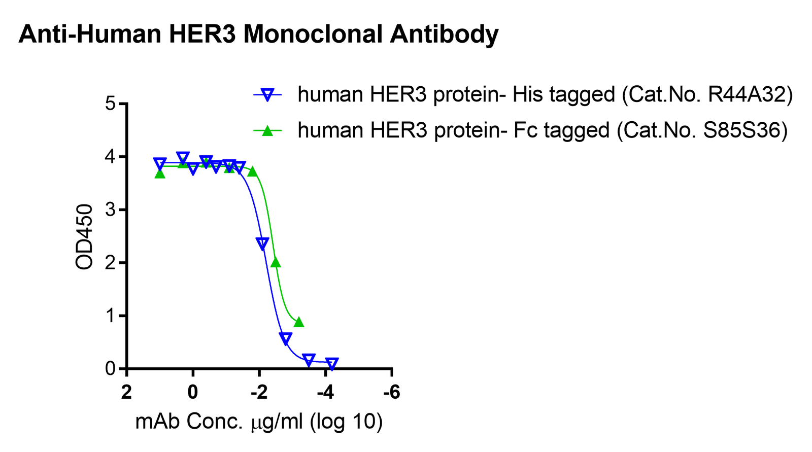 This antibody binds to human ErbB3 / HER3 protein- His tagged (Cat.No. R44A32) or Fc tagged (Cat.No. S85S36).