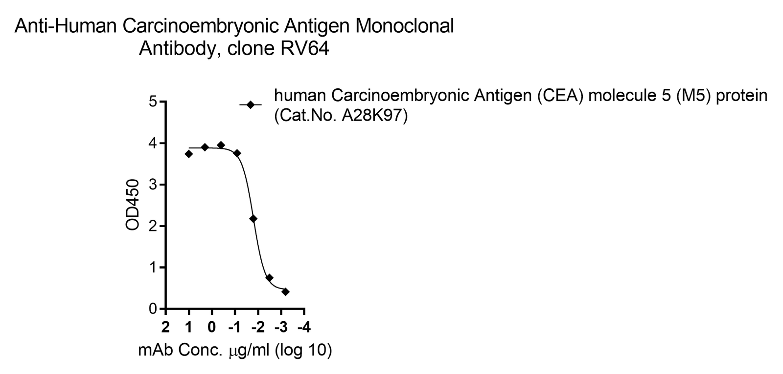 This antibody has been tested to bind to recombinant human Carcinoembryonic Antigen (CEA) molecule 5 (M5) protein (Cat.No. A28K97).